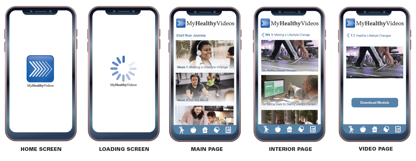 My Healthy Videos and New Beginnings were launched apps. The others are functioning prototypes designed by me.