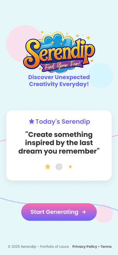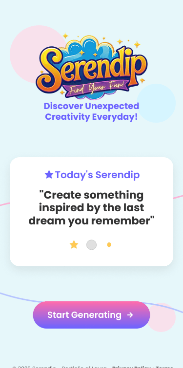 A serendipity generator! Get inspired by randomly generated ideas. Ideas get more tailored the more you feed into the AI.